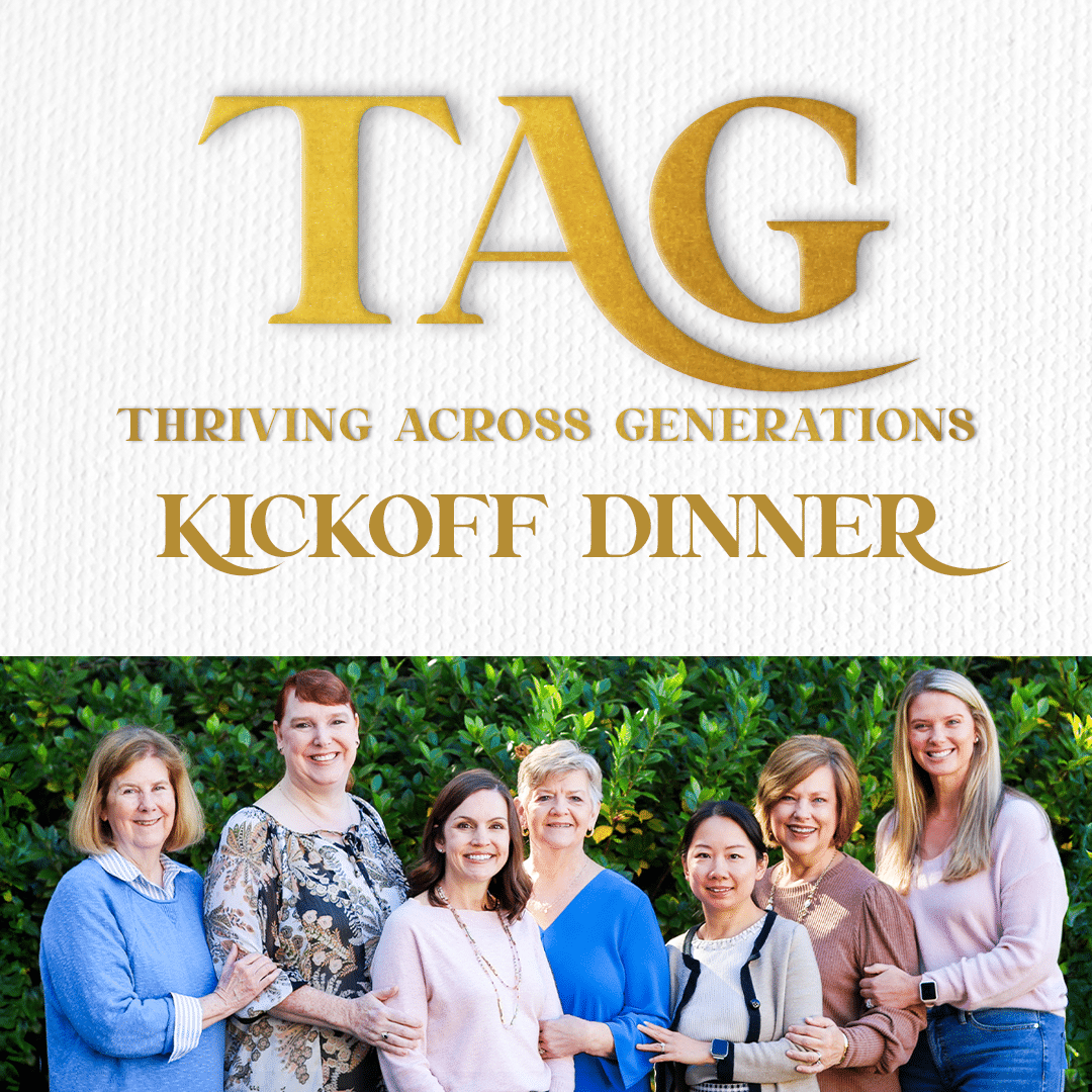 Each year, TAG small groups form to live out the biblical mandate of Titus 2:3-5 for authentic relationships between women. These relationships grow across generations in the body of Christ at Ingleside to encourage one another to follow Christ for God’s glory.